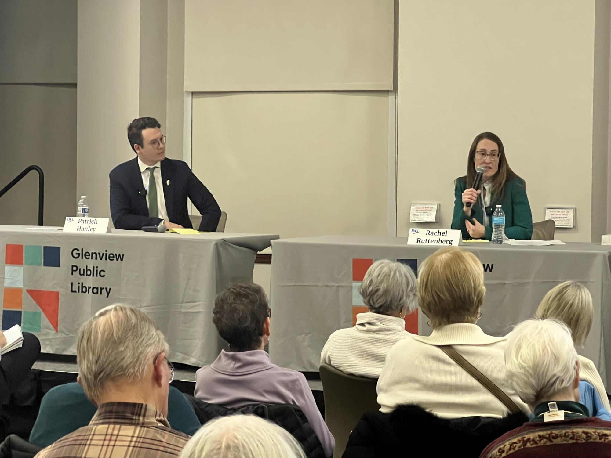 The debate over experience continued at a candidate forum hosted by the League of Women Voters at the Glenview Public Library on Thursday, where around 100 attendees listened to both candidates present their platforms. While they share common ground on issues like a progressive income tax and increasing affordable housing, neither candidate utilized their rebuttal opportunities during the event.